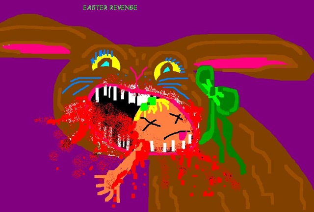 Easter bunny get up this morning and he want hims meat.  Them childrens was runnin all around up and down them streets.  He say that’s a sweet piece a child meat.