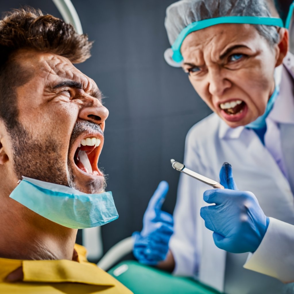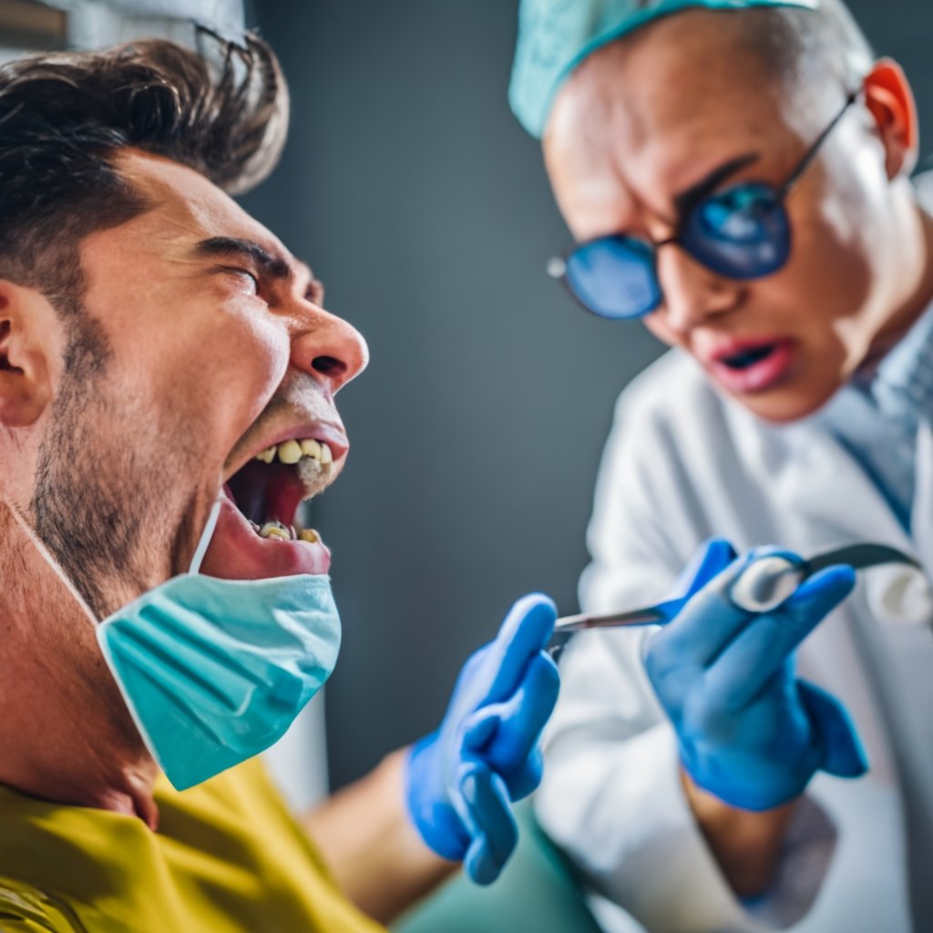 As the day wore on, the townsfolk watched in sheer terror as the two dentists embarked on a nightmarish crusade, brandishing oversized dental instruments and relentlessly hunting down anyone with teeth. It was a ghastly spectacle, a horrifying race to see who could extract the most teeth in a single day.