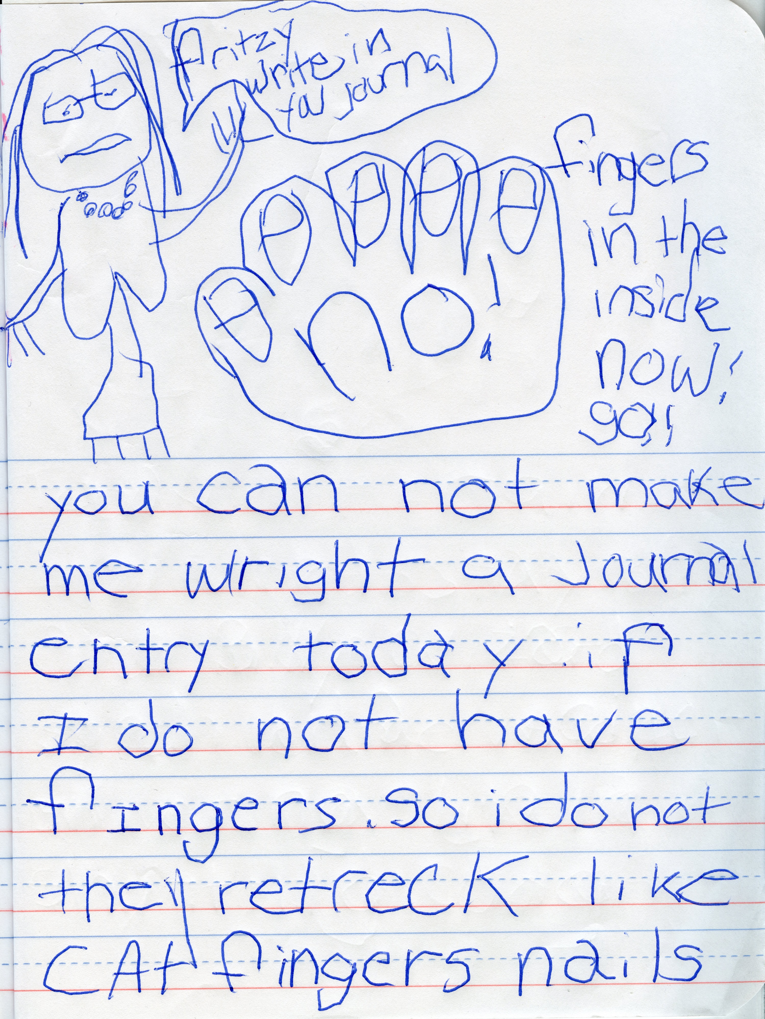 You can not make me wright a journal entry today if I do not have fingers. So I do not they retreck like cat fingers nails