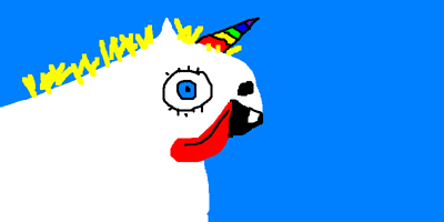 A unicorn is a wonderful thing. The very best unicorns have rainbow horns and like to drive around in cars and their tongues flap back just like a big dumb dog.