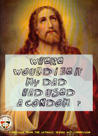 Another shows a Jesus like figure saying, “Where would I be if my Dad had used a condom?”