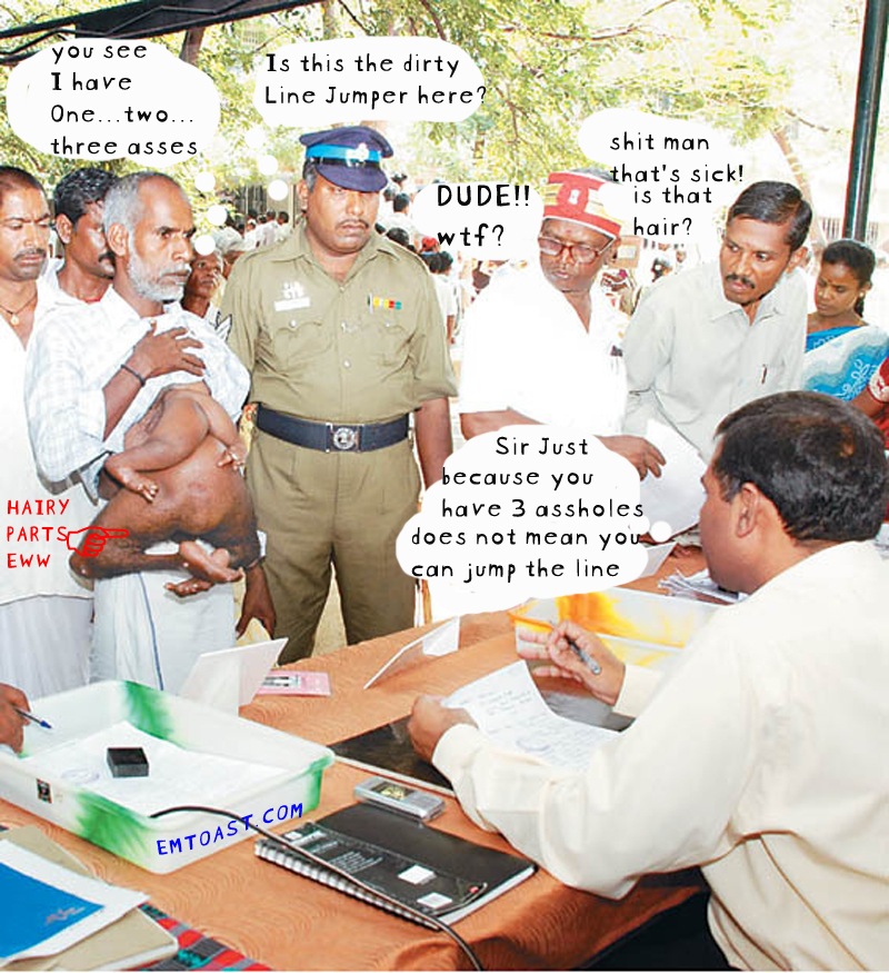 We have line-jumpers around here also, but I never checked for the number of assholes!!!!