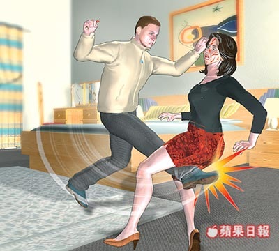 Looks like this guy has been playing too much Street Fighter 2 and decided to try Guile’s scissor kick move on his wife. Bet he gave her the old sonic boom after that.