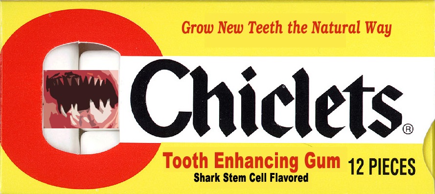 Chiclets, the candy coated gum once widely available in the US is set to make a comeback after many years of obscurity. Cadbury Adams owners of the Chiclets brand are capitalizing on recent advances in stem cell research to revitalize their product. The new product, simply called Chiclets Tooth Enhancing Gum is built on premise that sharks have multiple rows of regenerating teeth, a trait humans do not share.
