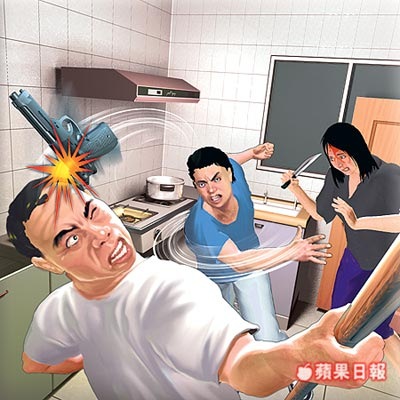 The mother handed a knife to the son and stood in the doorway wouldn’t let the father get out, the son started cutting the father with the knife, and the daughter later on came in with an iron pipe and beat her father’s head with it too. The father finally escaped and went to the police claiming his family was trying to kill him. He also said his wife said to the son “kill your father!” when she handed him the knife. The police arrested the mother, son and daughter after they admitted attacking the father but the mother denied telling her son to kill his father. They also accused the father of beating up the mother but the police could not find the baseball bat so no arrest of the father at this moment.