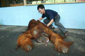 “Oh it was so brutal. That poor little guy, he was so scared he actually pulled a gun off of one of his security guards, but that giant orangutan was on him before he could do anything,” said Gina Carano of Oakland, California.