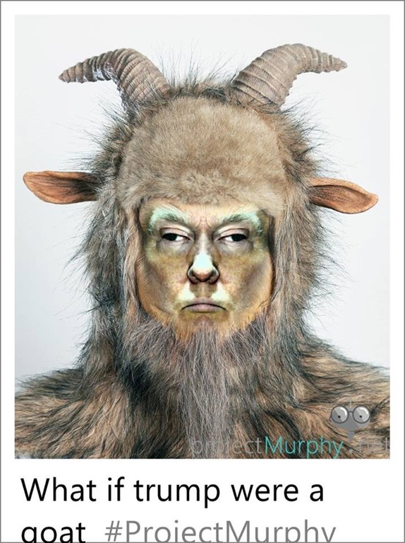 Art of the Folked What If Trump Was a Goat? EMToast January 5, 2017 All photos created by Murphy Bot based on EMToast’s questions. Related posts:Fifth Face of Frankenstein's MonsterLess Than ZeroThe Fifth Day of Christmas BiebersHeat Causes Horses to Foam at the MouthSanta MuerteBoo! Love Feeling for Toast Ghost Has Been Approved by Your Emotion Providing Service Post navigation Previous: What If Wolverine Was Abraham Lincoln?Next: What If a Baby Was a Bodybuilder?
