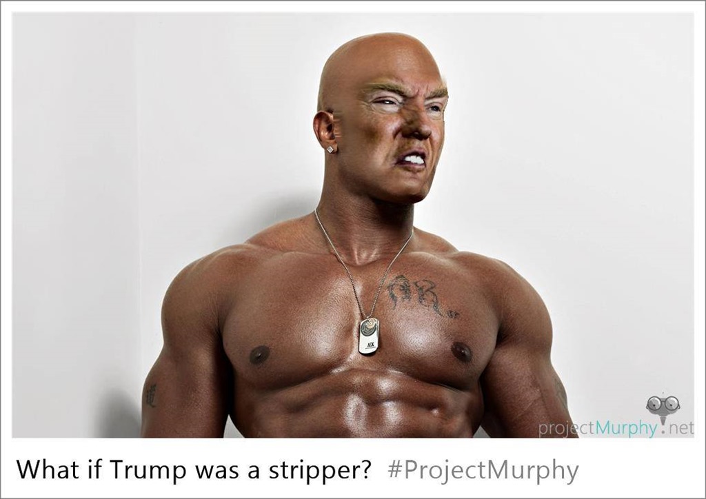 Art of the Folked What If Trump Was a Stripper? EMToast December 26, 2016 All photos created by Murphy Bot based on EMToast’s questions. Related posts:EMToast Corporate Logo DraftsHappy One Year Anniversary! EMToastGraffiti Paintings of ToastPixelated ToastDanny Devito Embraces the Terminator LifestyleBikini Cowboy Girl vs. the Skeleton Army Post navigation Previous: What If Santa Was a Snowman?Next: What If Channing Tatum Was Prince Harry?